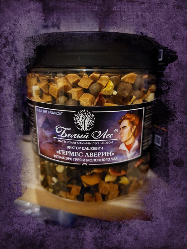 Чай получился действительно вкусный и очень разный - под стать характерам. В каждом наборе пробников обязательно находился хотя бы один, идеально попадающий в образ. Ароматы под персонажей я уже не раз подбирала, а вот вкус - впервые. Удивительно, как букет напитка может сочетаться с твоим представлением о литературном герое. Сложнее всего оказалось выбрать купаж для "Владимира". В одном был совершенно потрясающий цвет, а другой понравился своим вкусом. К счастью, Альбина помогла с этой дилеммой, добавив к "вкусному" варианту те самые цветы клитории из "цветного". За счёт пурпура ягод оттенок напитка получился не бирюзовым, а немного строгим синим, что прекрасно подошло главному диву Управления. Для желающих приобщиться к чайному клубу оставляю ссылки на Аверинские купажи - среди них есть близкие к традиционному вкусу Эрл Грея (но с интересными добавками) "Гермес" и "Анонимус", более травяной "Владимир", яркий специево-персиковый "Кузя" и льдистый фруктово-цветочно-перечный "Александр" с красивой кислинкой.
