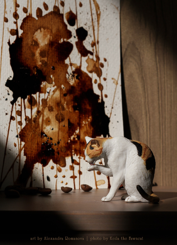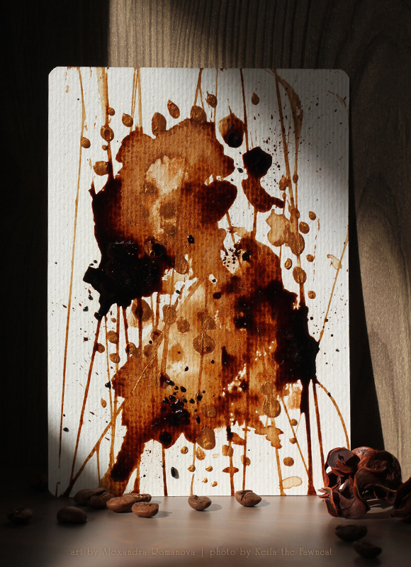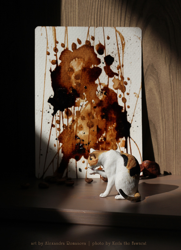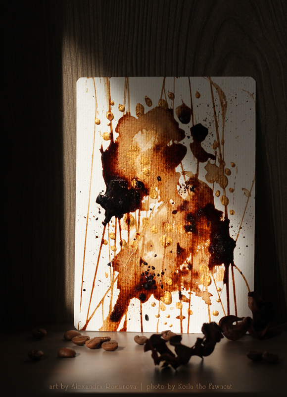 Красивое показываю )) Кофейная открытка от Саши ♥ С переливающимся на солнце золотым шиммером, объёмными элементами и тонким ароматом арабики. На фотосессию также прокрался котик ))